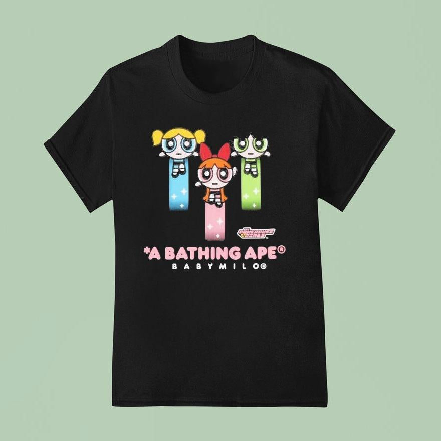Wardrobe essential, always chic with A Bathing Ape X The Powerpuff Girls Baby Milo Shirt, the iconic streetwear brand, A Bathing Ape, has collaborated with the beloved cartoon series, The Powerpuff Girls, to create an exciting new collection featuring their lovable character, Baby Milo. The limited edition shirt pays homage to both brands, making it a must-have for fans and fashion enthusiasts alike. A Bathing Ape X The Powerpuff Girls Baby Milo T Shirt