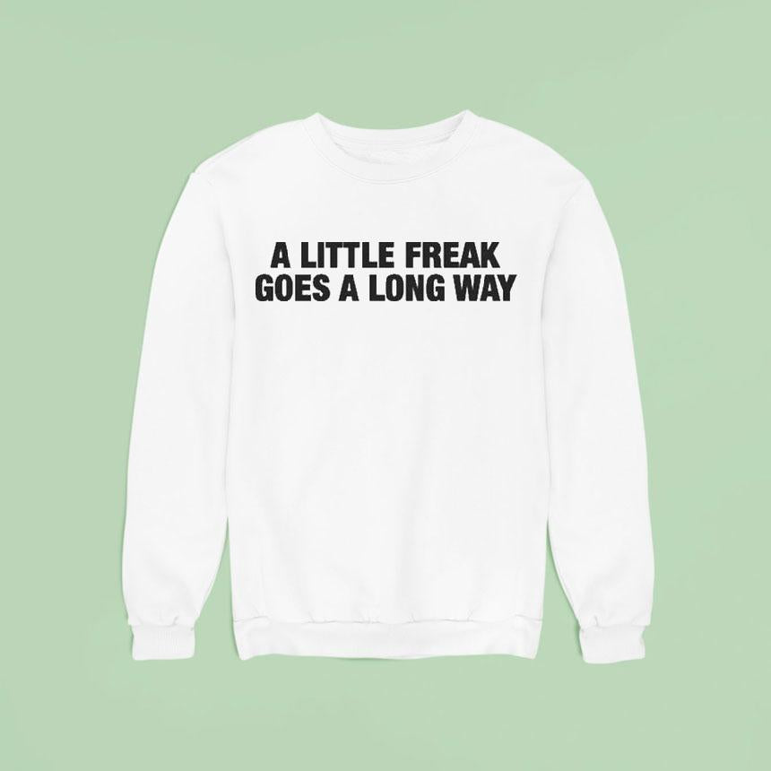 Wardrobe must-have with A Little Freak Goes A Long Way Shirt, step up your fashion game with our A Little Freak Goes A Long Way shirt! This edgy and unique tee will make a bold statement wherever you go. Embrace your inner freak and show it off with this must-have shirt. Get yours now! A Little Freak Goes A Long Way T Shirt